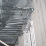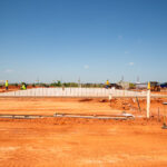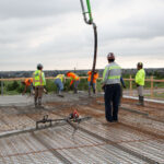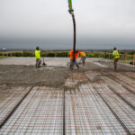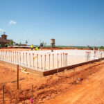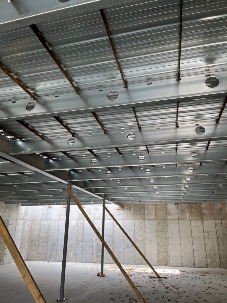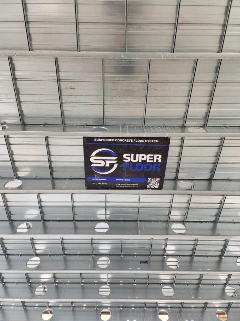 After the concrete was poured and cured, KBA began to set joists for the Super Floor suspended concrete flooring system.