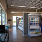 Finishes are installed and construction is complete. Sherwin-Williams has already begin moving product into the space, getting ready for opening.