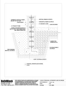 The following detail contains our 8 inch straight block placed on a stem wall with an interior slab on grade