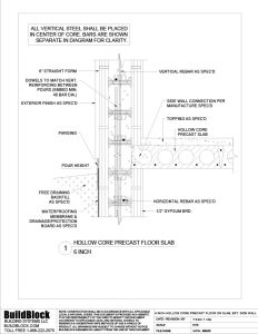 The following detail contains our 6 inch straight block on a hollow core precast floor on slab with a exterior side wall