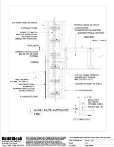 4.035 – BB600 6 inch Ledger Board Connection, Wood I Joist Parallel to Wall (DWG)