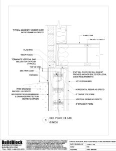 The following detail contains our 6 inch taper top block on a sill plate wood I joist parallel to wall with masonry veener