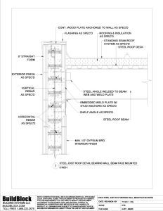 The following detail contains our 8 inch straight block placed in steel joist roof bearing wall with a beam face mounted