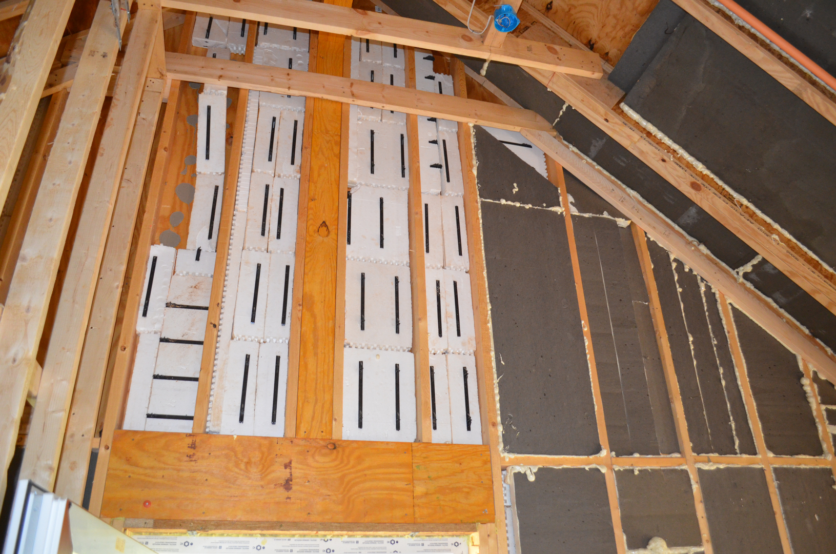Even though these features make BuildBlock the leading ICF for people who want to cut down on their waste, it does take some effort to finish a job without any trash. The team at Green Casa Maryland found a unique way to reclaim all pieces of unused BuildBlock. They took all of the leftover ICF on their site and implemented into the upstairs loft as a preliminary source of insulation. The loft utilizes 2×6 studs so GCM cut and glued thousands of pieces of BuildBlock into the wall cavity and then spray foamed the cracks. This creates a job with no waste and adds rigid foam insulation to an area of the house that really needed it. Even other companies who sponsored elements of this project have been blown away by GCM’s commitment to the goals of the build.