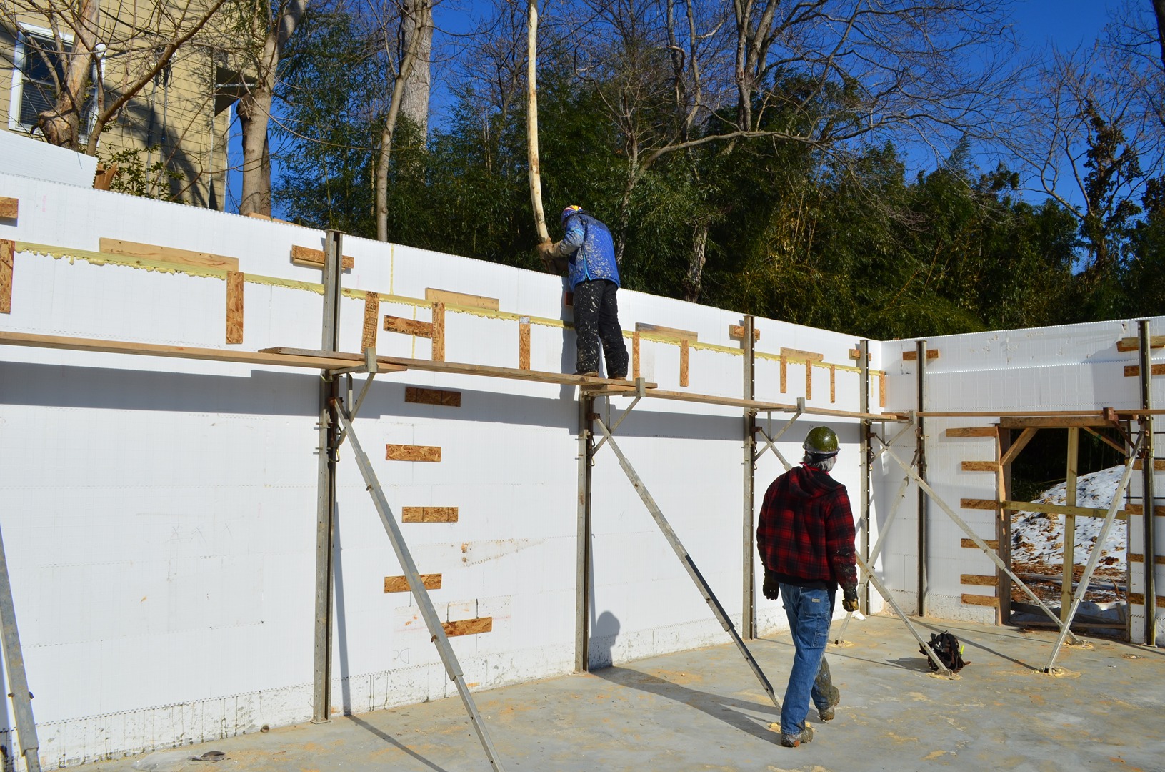 One challenge to this project is the fact that it was begun in the dead of winter and the ICF construction had to work around a great deal of snow and cold weather. The project utilizes Helix Rebar that had to be added to the concrete mix on pour day. There were some initial challenges with finding a concrete company that would work with Helix and pour in such a harsh environment but the pour went exceptionally well with beautiful results.