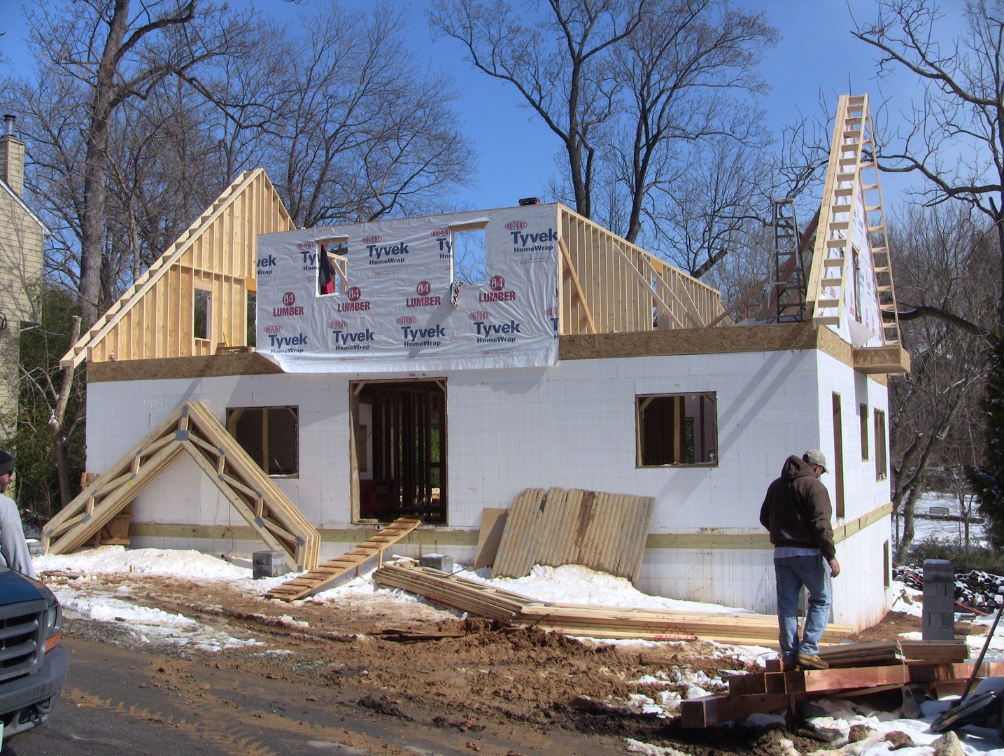 The craftsmanship of the Green Casa Maryland home is extraordinary. The ICF contractor did an exceptional job and had to deal with ensuring that all the walls were perfectly straight and that there were no voids when using the Helix. Even though there are 39 windows and doors of a dozen different sizes and configurations, there were no bulges, honeycombing, spills or breaks. When the Intus windows and doors arrived by shipping container from Lithuania, they fit perfectly into the openings made by the contractor.