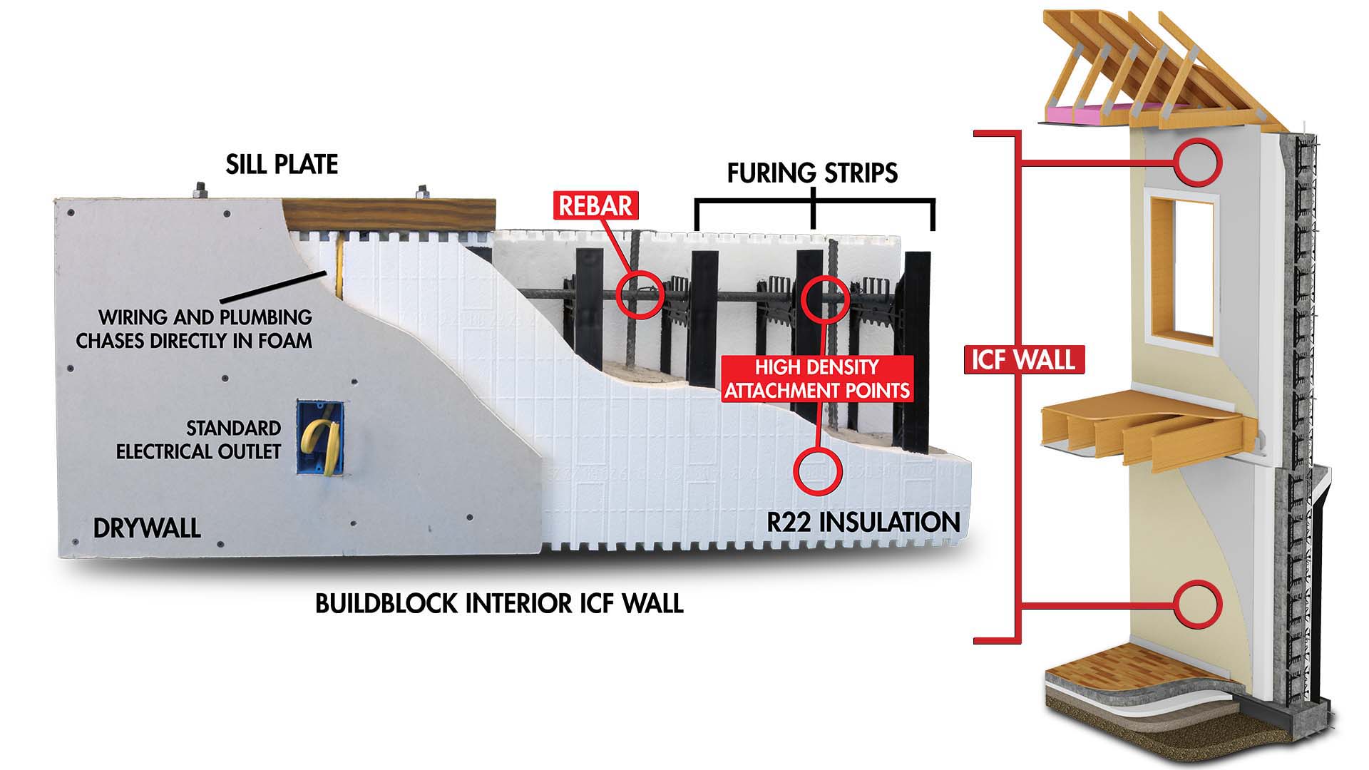 ICFs also do 6 things at once: Form, frame, fur, sheath, insulate, and sound-proof a concrete wall in one step, with a single product. When paired with the life long benefits for the homeowner, ICFs are the safest, cleanest, quickest, and most affordable building material on the market today.
