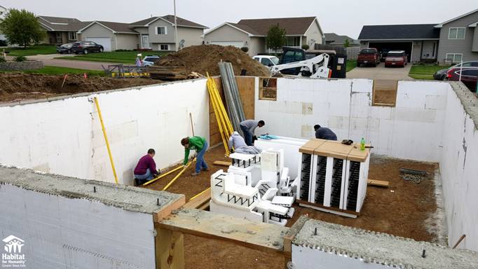 “When people first get to the jobsite they do have some questions,” said Niki Schillerstrom, Habitat of Sioux Falls Community Relations Director. “How does this work? How is it stable?” But once the basics of ICFs are explained, Schillerstrom said that the jobsite becomes very fun, “The forms are very light and easy to work with. Everybody likes that they are like Legos.”