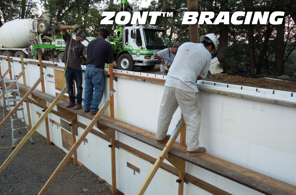 The Zont & Zuckle Horizontal ICF Bracing System is a cost-effective bracing and alignment system that uses traditional lumber that can be reused in the rest of the project.