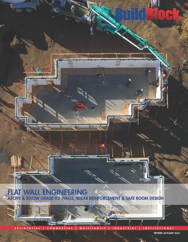 This document has been replaced by the BuildBlock Flat Wall Engineering Manual: Above & Below Grade ICF Walls, Rebar Reinforcement, and Safe Room Design. But the engineering is still valid for use and reference.