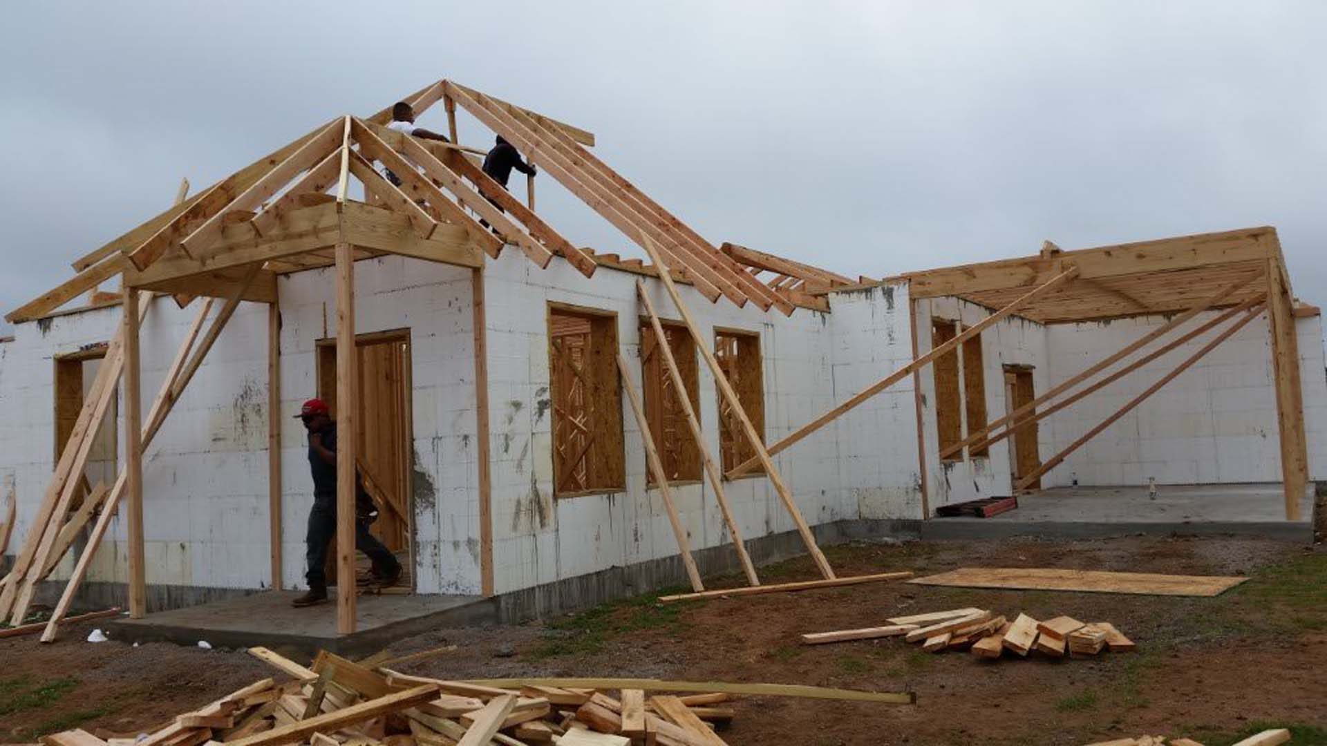 - The project utilizes wood bucking and brick exterior